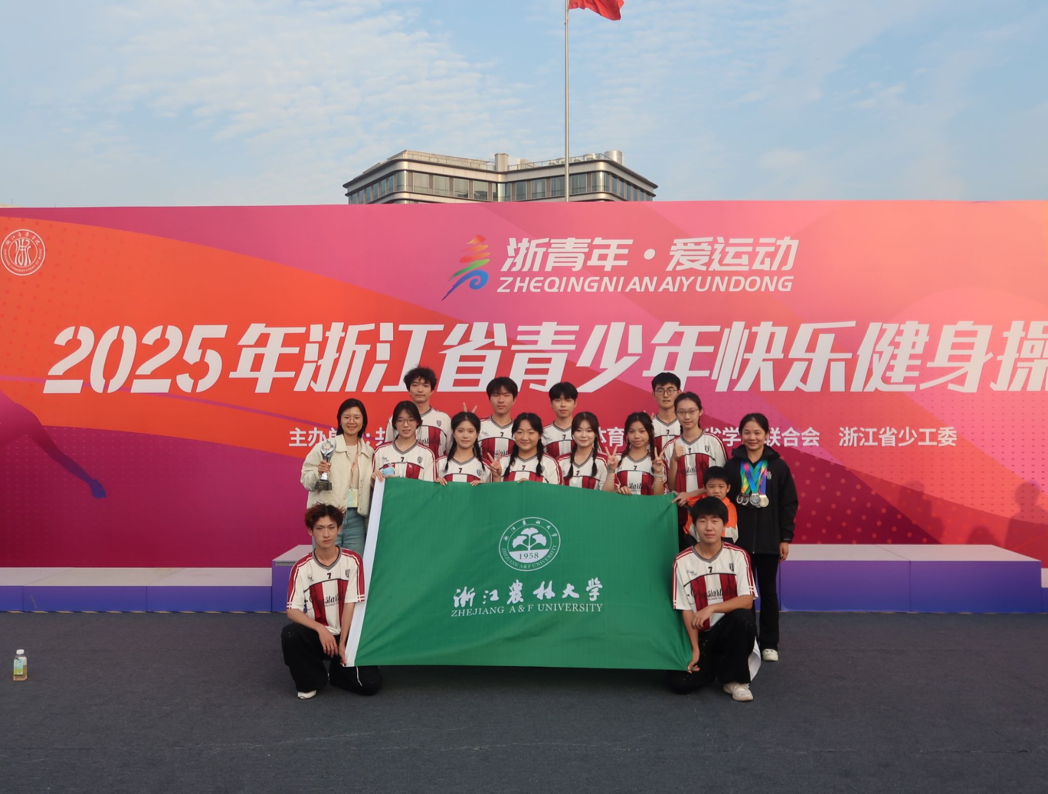 浙江省第13届青少年健美操锦标赛日前在金华市举行,浙江农林大学校操舞队用自己的拼搏和热情,在本次竞赛中共斩...